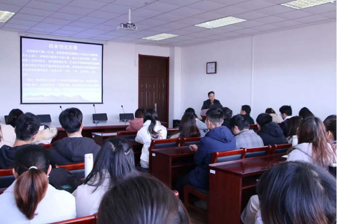 2019年12月6日星期五下午,应EVO真人视讯邀请,江苏省江海粮油集团的陈明总经理在公司德业楼407报告厅作了关于《当前粮食物流行业发展的思考》的指导讲座。讲座由EVO真人视讯副经理陶经辉主持,公司物流管理专业的部分大三员工聆听了讲座。