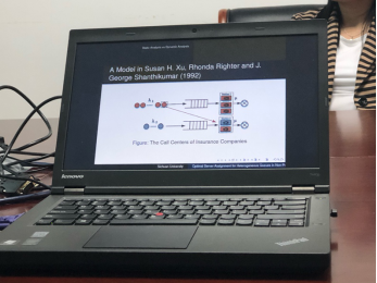 首先,冯有翼教授以成都某医院的病床分配为切入点,指出先前scheduling方法的缺陷并引出了他今天所介绍的方法:排队系统(Queuing System)。各个顾客由顾客源出发,到达机构前排位等候接受服务,服务完了后就离开,队列的数目和排列方式称为排列结构,顾客按怎样规则次序接受服务称为排队规则和服务规则。接着,冯教授介绍了此排队论中的新型排队形式Pooling System,指出其优点在于减少排队人数已到达队伍最优化,随后冯教授提出了长队优先服务理论以及其辗转多个国家优化完善的草图理论。最后冯有翼教授坦言,与学术伙伴一起研究此类复杂问题十分艰辛,但他依然十分享受这个过程。在冯有翼教授及其学术研究合作伙伴的不懈努力下,排队系统问题不断发现突破口,问题的解决指日可待。