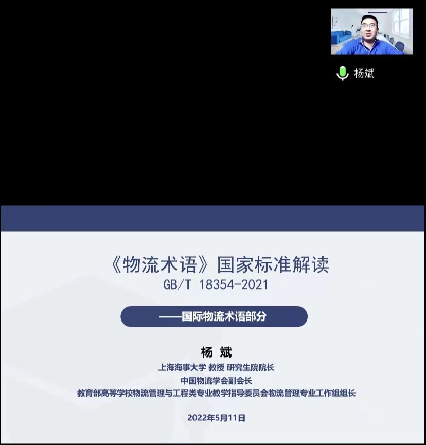 5月12号下午,应EVO真人视讯邀请,中国物流学会副会长、教育部物流管理与工程教学指导委员会物流管理工作组组长、上海海事大学研究生院经理杨斌教授以《物流术语-国家标准解读》为题作线上讲座。讲座由EVO真人视讯物流管理系系主任范建昌主持,EVO真人视讯经理陶经辉教授和部分师生参加讲座。