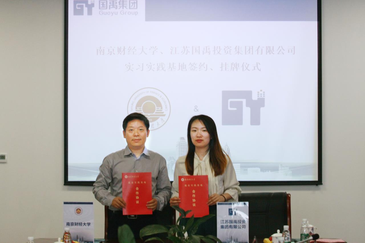 黄建元总会计师授予江苏国禹投资集团有限公司“就业实践基地”牌匾,陶化东董事长代表公司接受本次授牌。