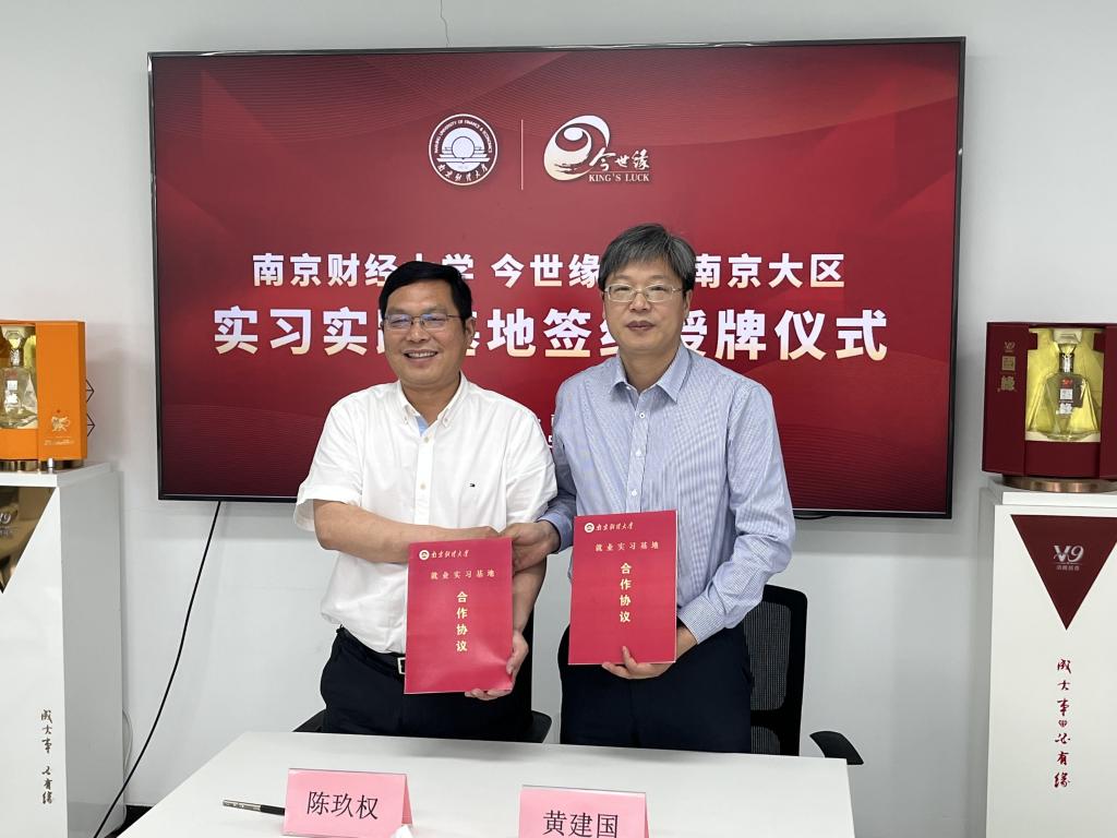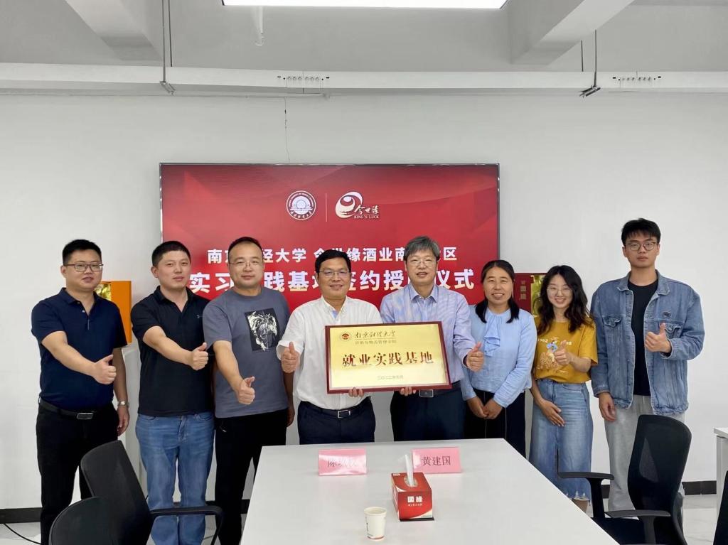为贯彻落实党中央、国务院关于高校毕业生就业工作的决策部署,全面促进毕业生就业,根据公司访企拓岗促就业专项行动工作部署和要求,5月31日,公司党委书记黄建国、副书记张杰一行走访今世缘酒业销售有限公司南京分公司,举行就业实习基地签约仪式。江苏今世缘酒业副总经理兼南京大区总经理陈玖权,国缘V9事业部经理鲍震,国缘V9事业部副经理王振华,南京大区品牌经理孟强,国缘V9事业部团购拓展处经理胡小亮参加仪式。