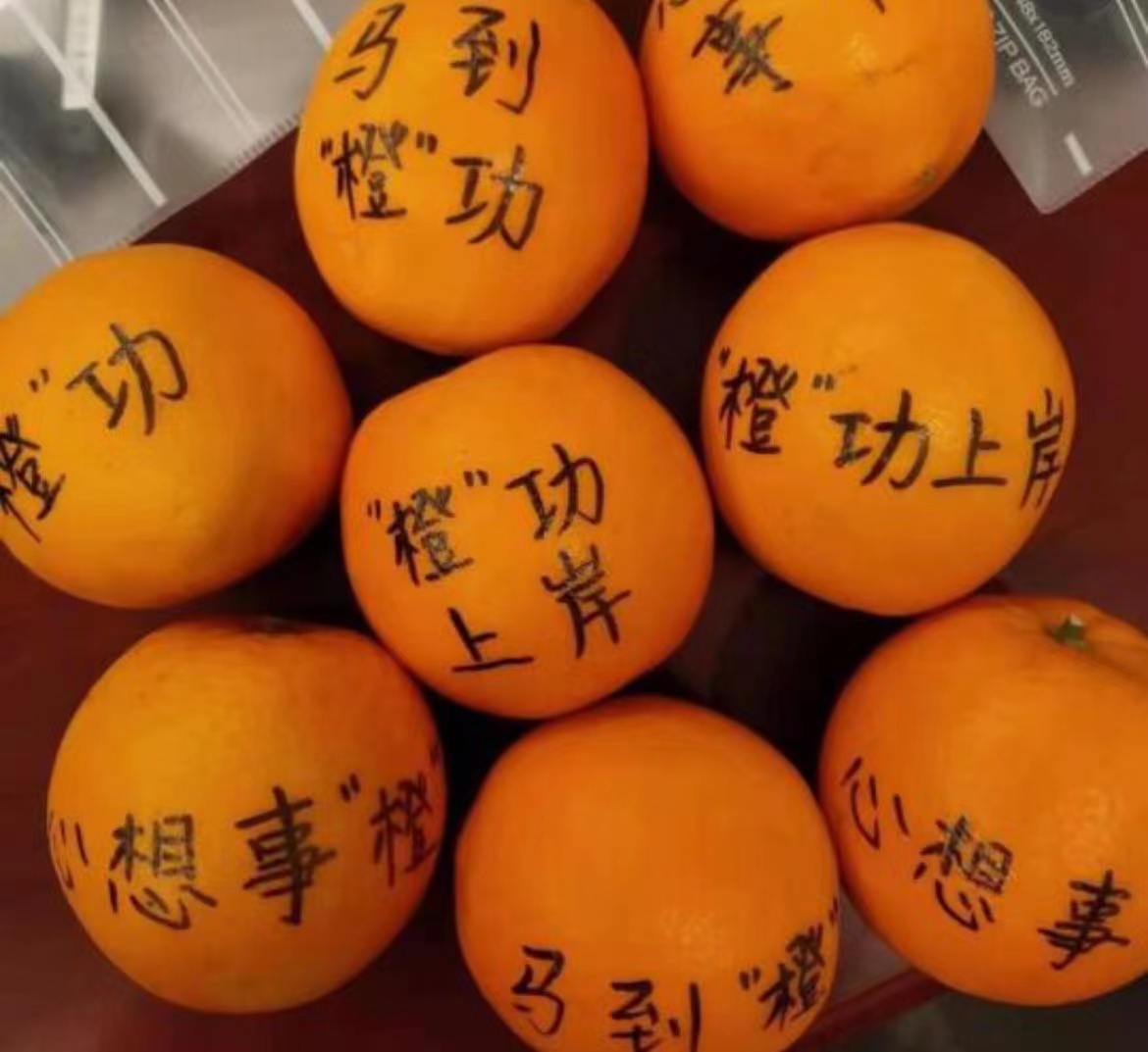 活动当天,公司领导首先为考研学子发放了精心准备且寓意深刻的暖心礼物:心想事成“橙”——橙子寓意着心想事成,表达公司对学子们金榜题名、梦想成真的真挚祝愿。口罩在特殊期间是必不可少的防疫物资,正值冬季,是病毒传播的高峰期,出门在外一定要注意加强防护。每一份精美的礼物里还有独一无二的便签——“一战成硕”“金榜题名”“心想事成”“牛气冲天”等,无不表现出学弟学妹们对莘莘学子的美好祝愿。