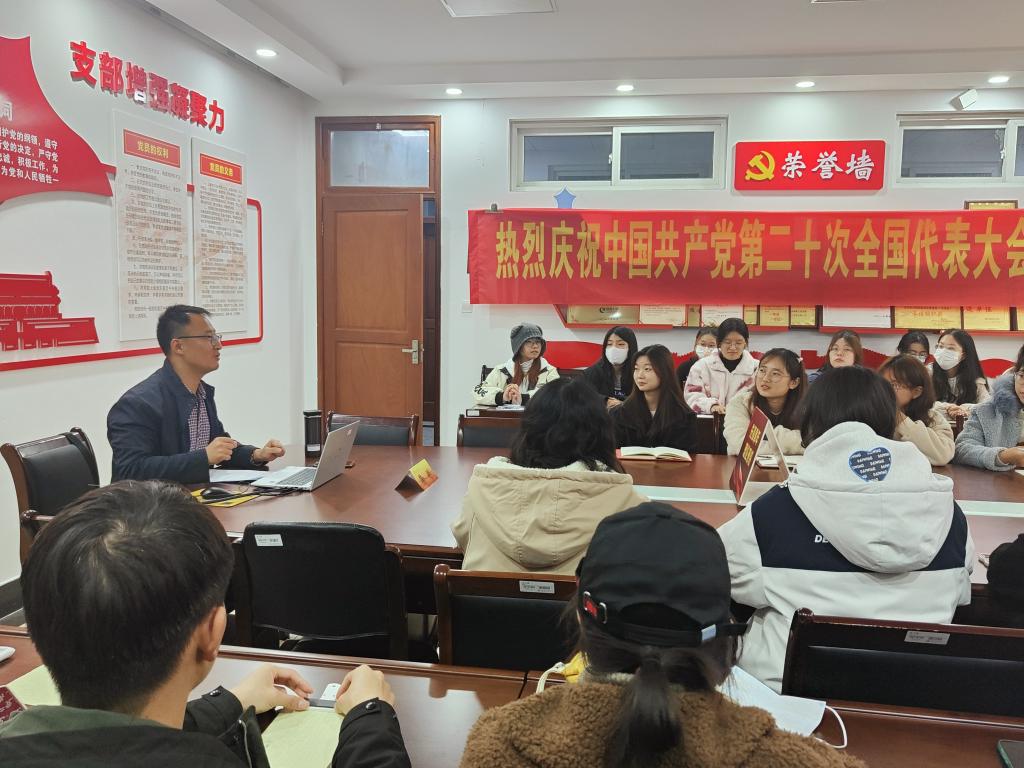 徐刚老师从过去五年的工作和新时代十年的伟大变革、新时代新征程中国共产党的使命任务、强化现代化建设人才支撑等多方面带领同学们认真学习了党的二十大精神,总结了党一路发展以来的成功经验和优良的精神品质。徐老师结合工作实际,运用丰富的案例、通俗易懂的语言向同学们分享了自己的学习经验感悟,并鼓励同学们努力学习、奋发进取。