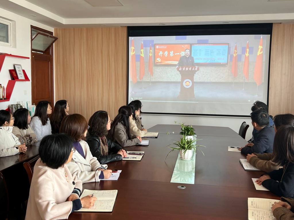 为深入学习贯彻党的二十大精神,落实习近平总书记关于“大思政课”建设的重要指示精神,3月29日上午,EVO真人视讯组织教师及部分员工代表在德业楼535会议室集中观看公司党委书记张利民专题讲授的《开学第一课》。