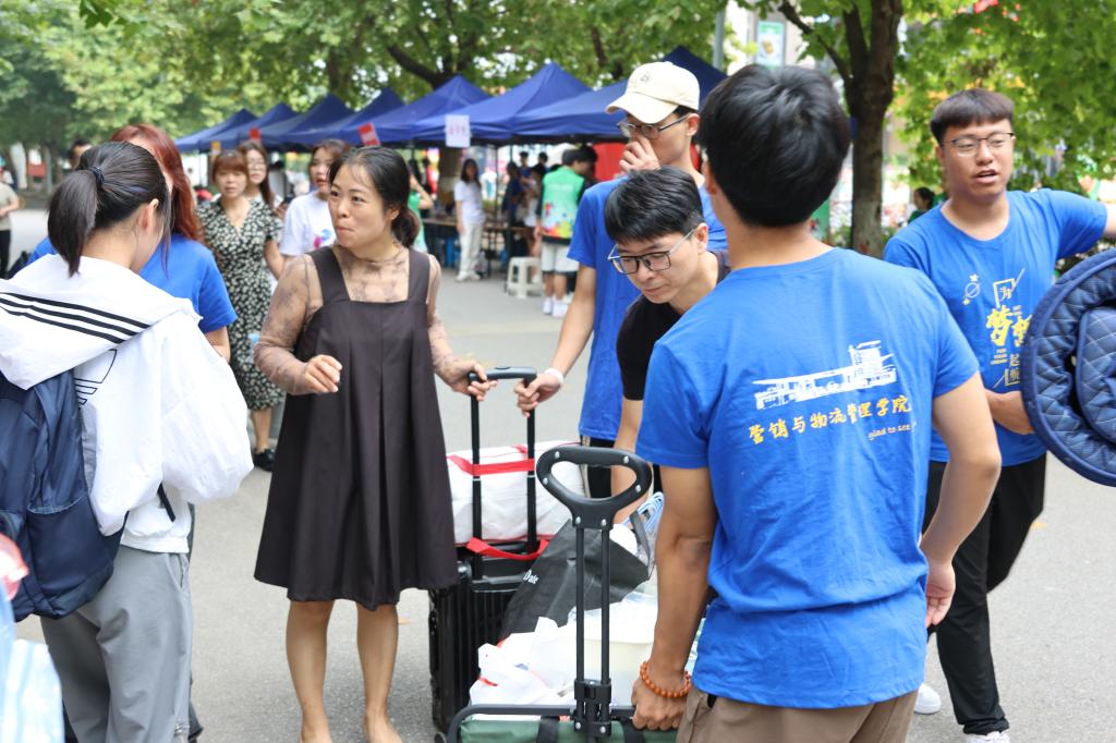 迎着第一缕朝阳,志愿者服务站点,志愿者们拉横幅,设场地,准备物资,忙得不亦乐乎。随着第一批新生和家长踏进校门,从迎新接待、引领进宿舍、办理报到手续,志愿者们热情周到,耐心细致,让新生及家长们感受到了南财校园的温暖与热情。