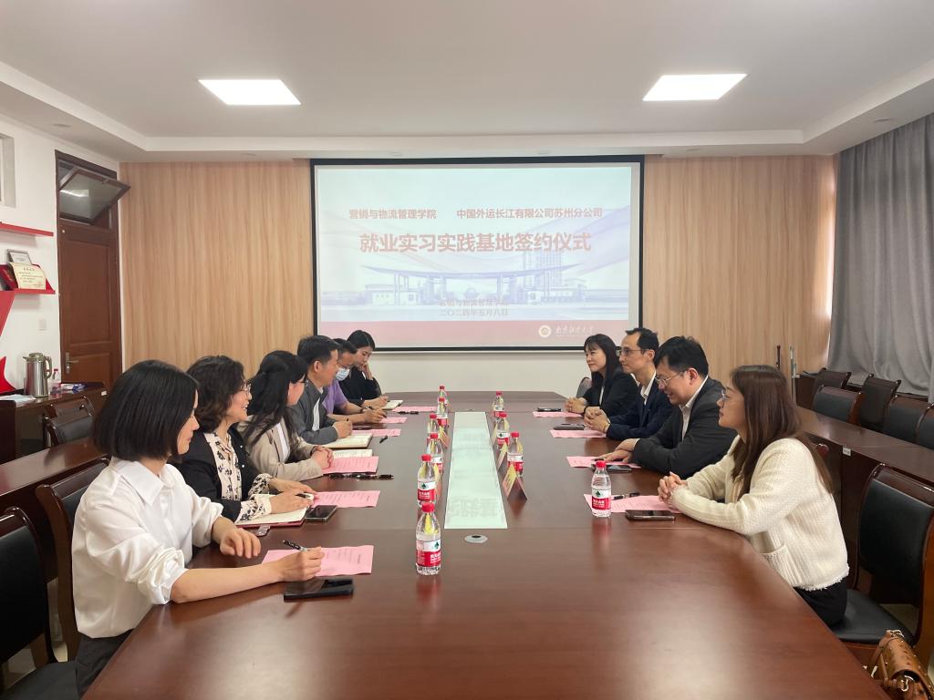 5月8日下午,EVO真人视讯与中国外运长江有限公司苏州分公司共建就业实习实践基地签约授牌仪式在德业楼535会议室举行。中国外运长江有限公司苏州分公司中外运苏州分公司党委书记、总经理钟轩言,人力资源部经理蒋熙、经理助理郦丽雅、招聘专员顾欢,公司党委书记刘颖、经理陶经辉、党委副书记仲巧林、物流管理系主任范建昌等参加仪式。仪式由党委书记刘颖主持。