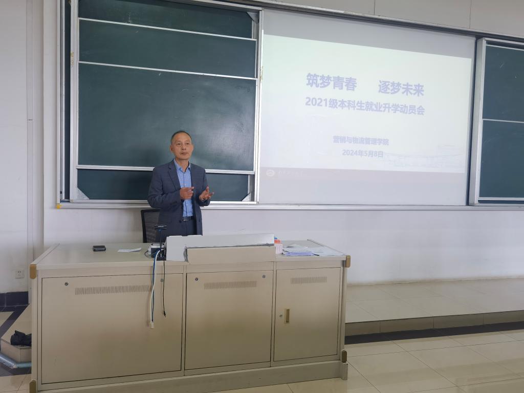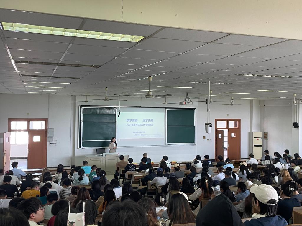 为充分调动2021级本科生就业升学考研积极性,5月8日下午,EVO真人视讯于博观楼302教室举办“筑梦青春,逐梦未来”就业升学动员大会。公司党委书记刘颖、党委副书记仲巧林、副经理刘杰、副经理姚杰以及辅导员徐辉以及全体2021级本科生参加会议。会议由党委副书记仲巧林主持。