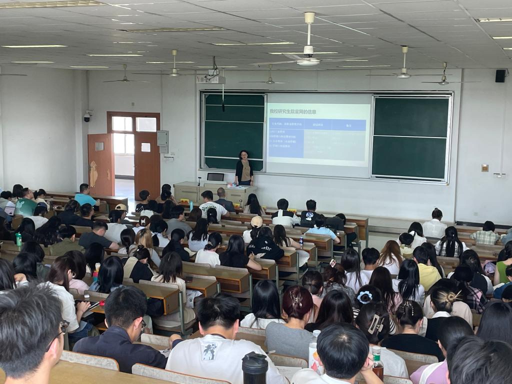 会议伊始,刘颖老师从职业生涯选择的角度,向同学们分析了目前考研、考公、出国、就业等形势及相关情况,建议同学们结合自身兴趣、知识水平和专业能力等清晰认识自我,扬长避短,做出最适合自己选择。