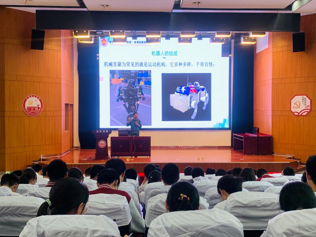 章磊老师将公司“双高”金课之一的《这就是机器人》带入高中讲堂。他用生动有趣的授课方式,通俗易懂地解读专业知识,为高中生开展了一场专业启蒙性质的通识教育,帮助高中学子打开视野,提升学习热情。