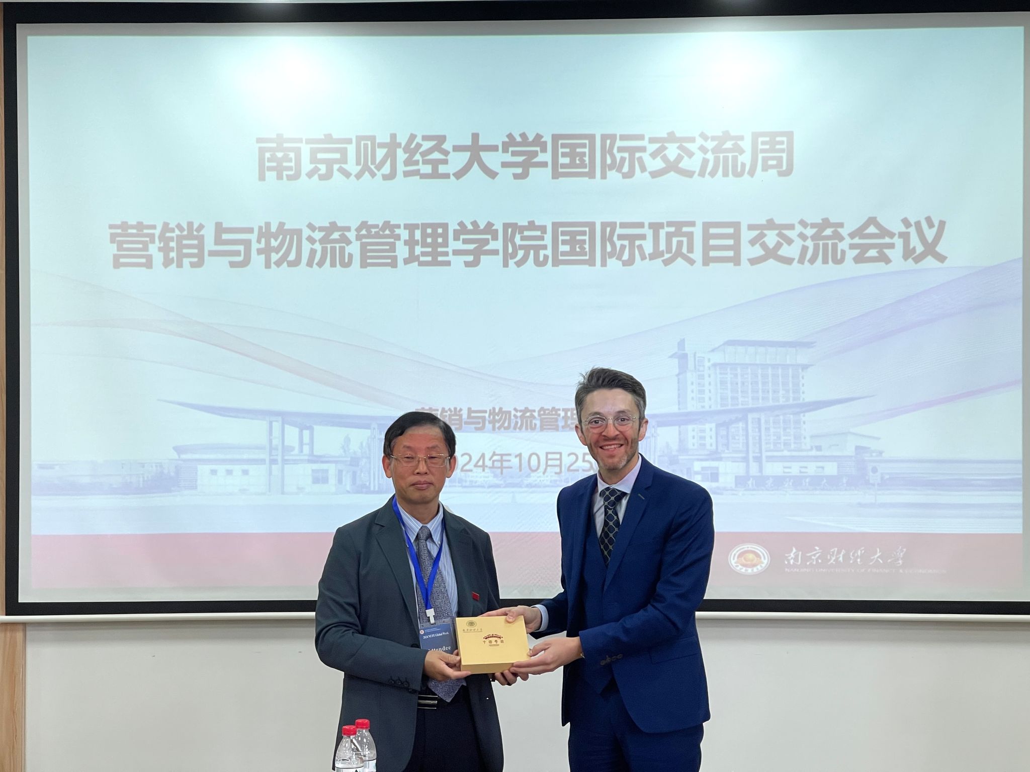 黄步龙副董事长致欢迎词。他介绍了公司与法国高等对外贸易公司项目合作情况,希望两校以共建国际合作联合实验室为平台,进一步拓展师生交流深度,扩大在物流与供应链管理等领域的合作,推动形成更多高质量的合作成果。