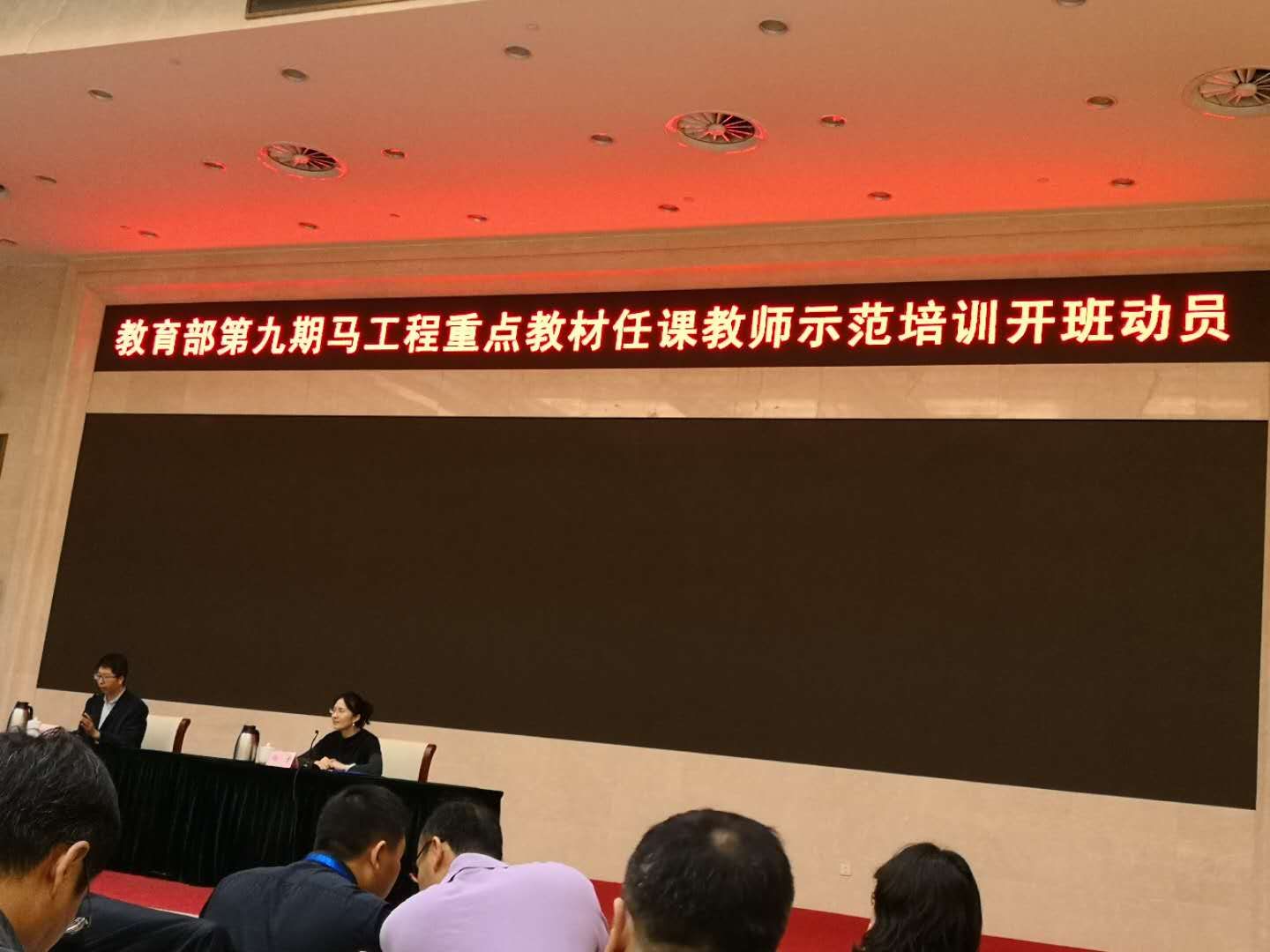 为进一步深入学习贯彻习近平新时代中国特色社会主义思想,落实《关于加强和改进新形势下大中小学教材建设的意见》,切实推进马克思主义理论研究和建设工程(简称马工程)重点教材统一使用工作,教育部于4月24至26日在中国人民解放军北京军区招待所对今年新出版的2种马工程重点教材组织开展了任课教师全国示范培训。会议采取集中开班动员与按教材分班授课、课堂讲授与分组研讨相结合的形式,安排了重点教材编写课题组专家到班授课,帮助任课教师吃准吃透教材的主要内容和基本精神,提高教学能力和水平。