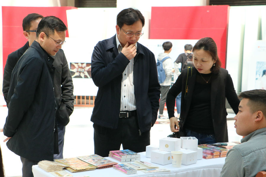 与会领导和老师参观文化创意产品展示