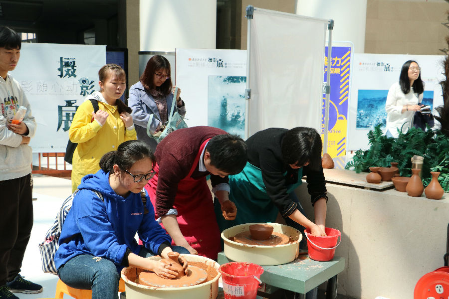 最后,公司党委书记殷建新宣布“金陵魅力――文化创意产品展示”活动正式开幕。开幕式结束后,全体师生共同参观此次活动展示的艺术品,并现场体验了部分工艺品的制作。