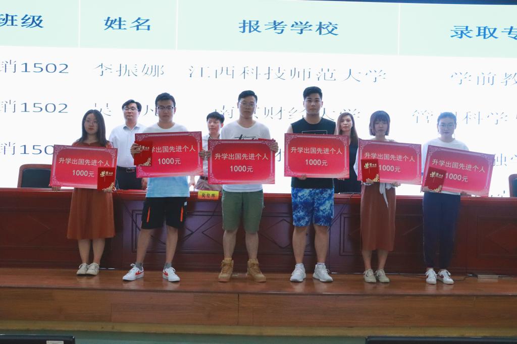 接着,副经理邱玉琢宣读对43名升学出国先进个人的表彰决定,并对物流管理专业近30%的升学出国率给予表扬。出席的各位领导老师为43位升学出国先进个人颁发奖金和证书。