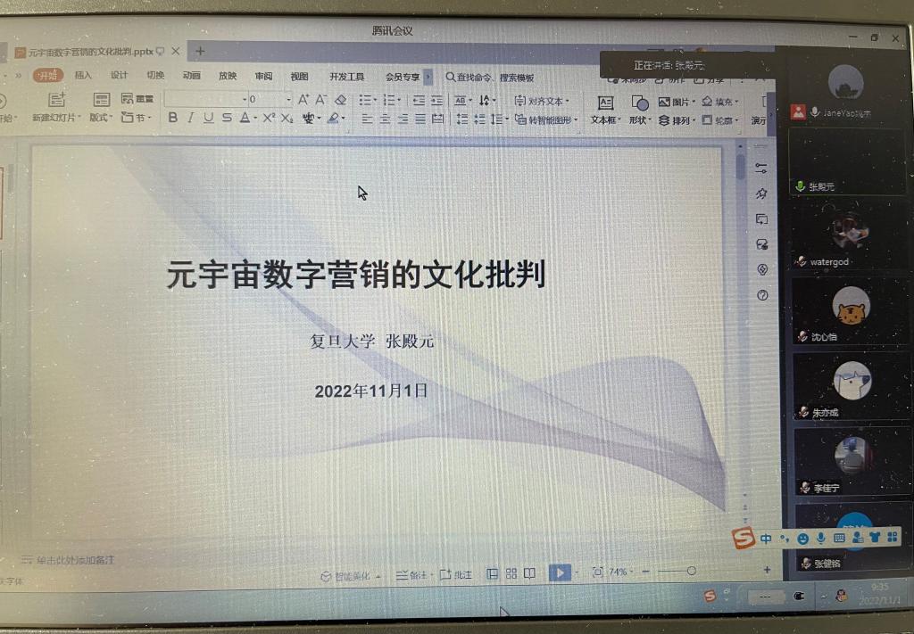 11月1日上午,应EVO真人视讯邀请,复旦大学新闻公司张殿元教授在线作了题为“元宇宙数字营销的文化批判”的讲座。讲座由EVO真人视讯副经理姚杰教授主持。EVO真人视讯研究生、本科生和部分教师参加讲座。