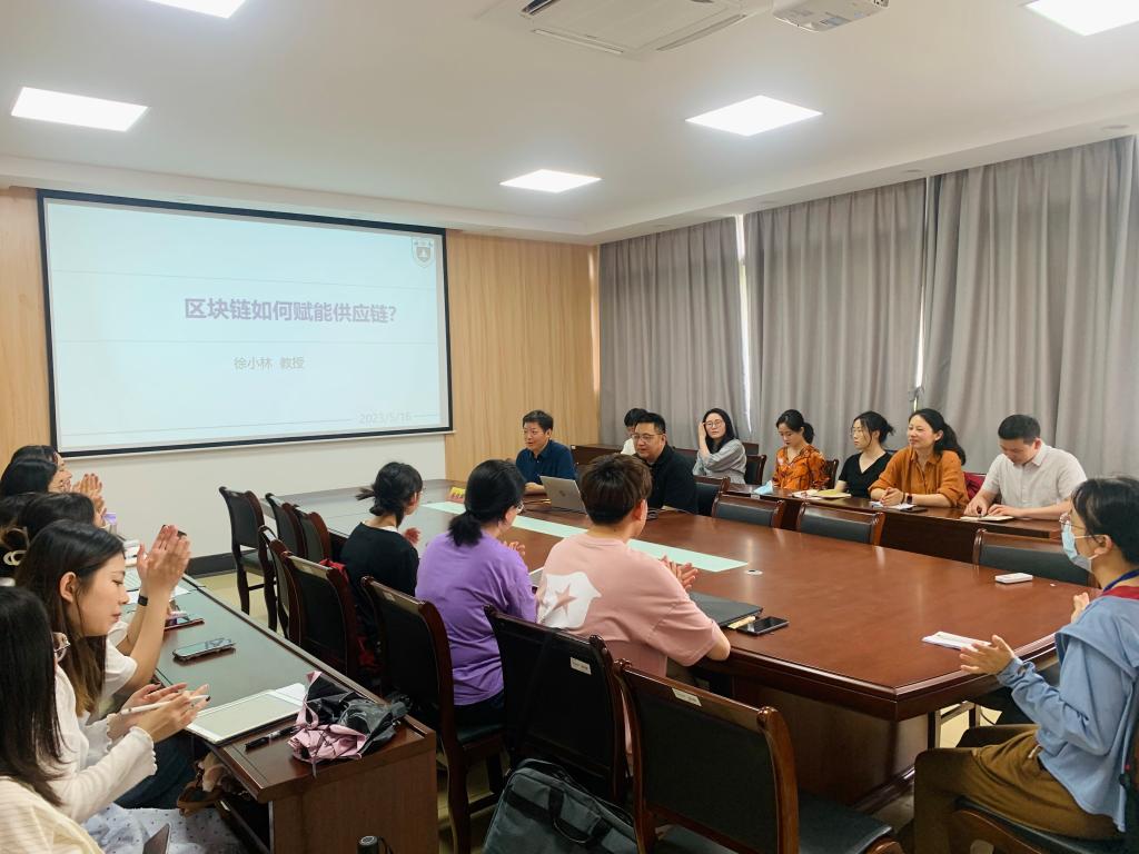 5月16日上午10:00在德业楼539会议室,应EVO真人视讯邀请,南京大学商公司徐小林教授来公司作了题为“区块链如何赋能供应链”的讲座。讲座由EVO真人视讯经理陶经辉教授主持。EVO真人视讯研究生和部分教师参加讲座。