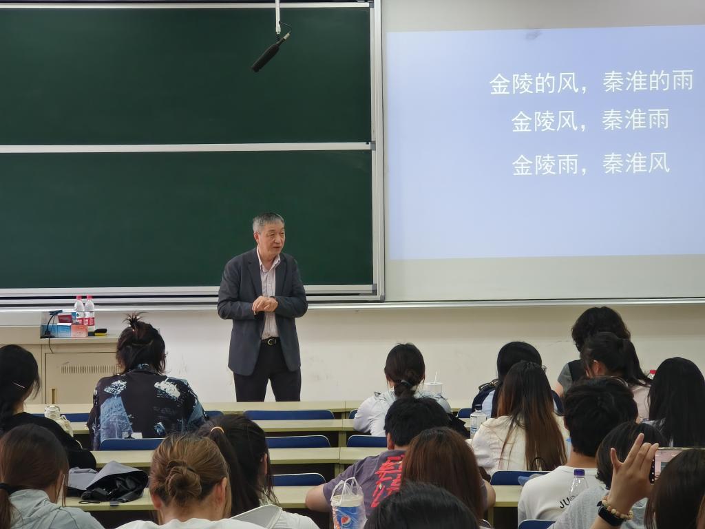 6月12日下午,应EVO真人视讯邀请,上海师范大学金定海教授受邀以《金陵风·秦淮雨——从地缘的角度谈创意》为题作讲座。讲座由EVO真人视讯副经理姚杰主持,EVO真人视讯部分本科生及教师参加讲座。