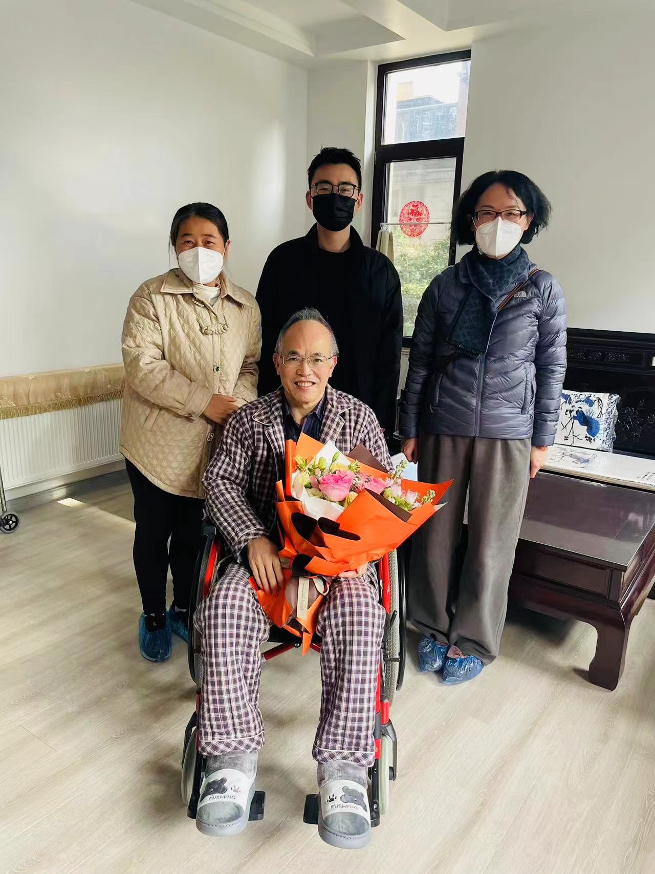 公司领导还给生病的项银仕老师送上鲜花和节日慰问品,并详细询问了他的身体恢复情况、日常生活情况,并表示“公司是一个大家庭,有什么困难和公司说,公司一定帮忙解决”。项老师对于公司的关心表示感谢。