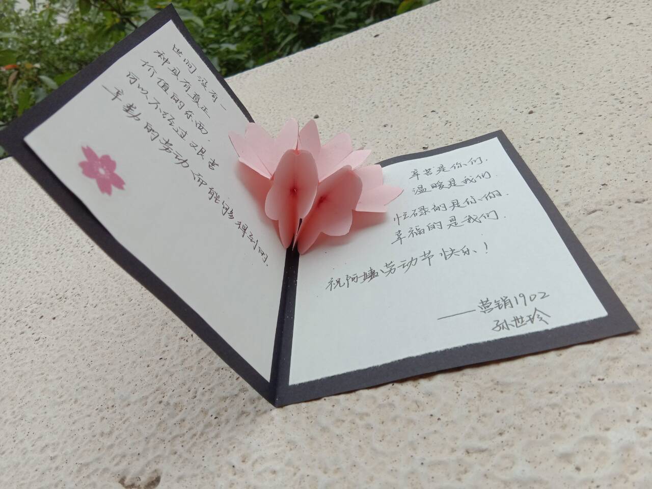 疫情防控,身处校园,但是最炫的颜色,无处不在。同学们以“劳动者的色彩”作为切入点,亲手制作了精美卡片,写上最想说的话语,送给心中最伟大、最平凡的劳动者,致敬他们用双肩扛起责任,用劳动努力装点世界。