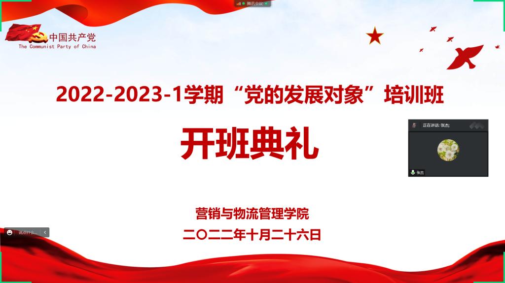 为了加强对党的发展对象培养教育,做好公司党员发展工作,10月26日下午,EVO真人视讯分党校通过线上形式举行2022-2023-1学期“党的发展对象”党课培训班开班仪式。公司党委副书记张杰、各党支部书记及35名党的发展对象参加仪式,本科生第一党支部书记仲巧林主持开班仪式。