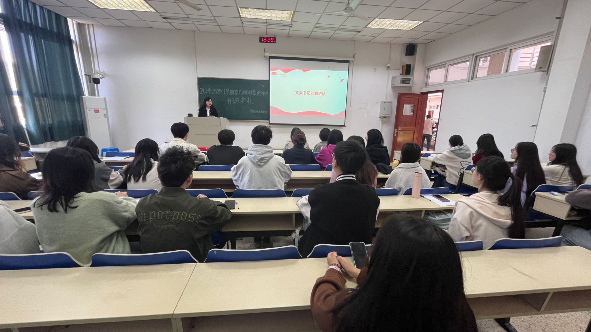党委书记刘颖做开班动员,希望全体学员认真进行理论学习和实践培训,进一步端正入党动机、坚定理想信念、加强党性修养、做好示范作用,传递正能量,自愿把个人的理想追求不断融入到党和国家的事业之中,在青春赛道上跑出属于自己的最好成绩。