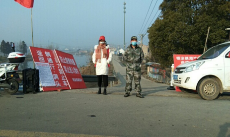 夏梦颖在村口执勤