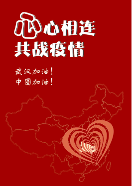 “我的海报主要采用中国地图以及‘心心相连,共战疫情’标语等元素。其中以中国地图为背景,并把湖北省和武汉的坐标凸显出来,同时用爱心将它们包围,不断扩大的爱心寓意着来自全国人民对湖北省各地的支援,表达‘万众一心,中国必将战胜疫情’的信念”,广告1701班预备党员王晓雅说道。