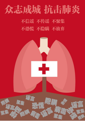 “我的海报作品主体是人的肺部器官,点名疫情的主题,中间矩形的医护标志表达的是医护人员为我们的健康保驾护航。除此之外,下方呈污水状,是想告诉大家避免谣言、恐慌、隐瞒也是非常重要的,需要及时排除”,广告1702入党积极子王郁说道。