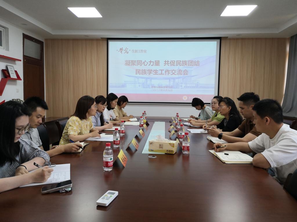 6月9日下午,EVO真人视讯“萤光”生涯工作室开展民族员工工作交流会。会议邀请公司新疆派驻老师范惠玲,少数民族辅导员艾斯克尔、张雪老师参加,公司党委书记刘颖、党委副书记仲巧林、辅导员、班主任代表参会。