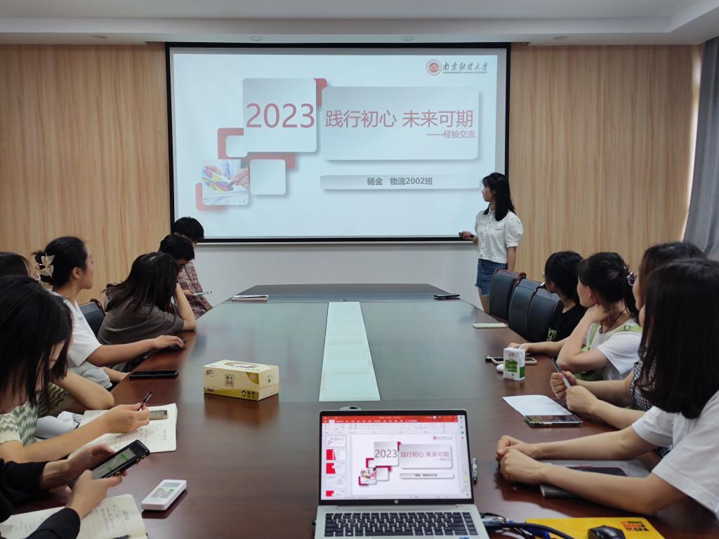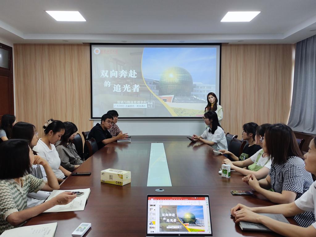 广告2002班古丽孜巴·吐尔孙江从自身专业学习、社团活动、实习实践等方面进行了分享,提醒同学们要及时做好生涯规划,积极参与各项活动,把握好实习实践机会,多积累经验;物流2002班杨金从学习经验、志愿服务、主观能动性方面分享,希望学弟学妹们要有集体责任感,发挥主观能动性,注重学习总结,善于向老师、身边学习优秀学长学习;营销2001班洪银花从日常学习、生活方面进行了分享,她认为日常积累非常重要,平时要脚踏实地,认真制定学习计划,强化练习巩固。
