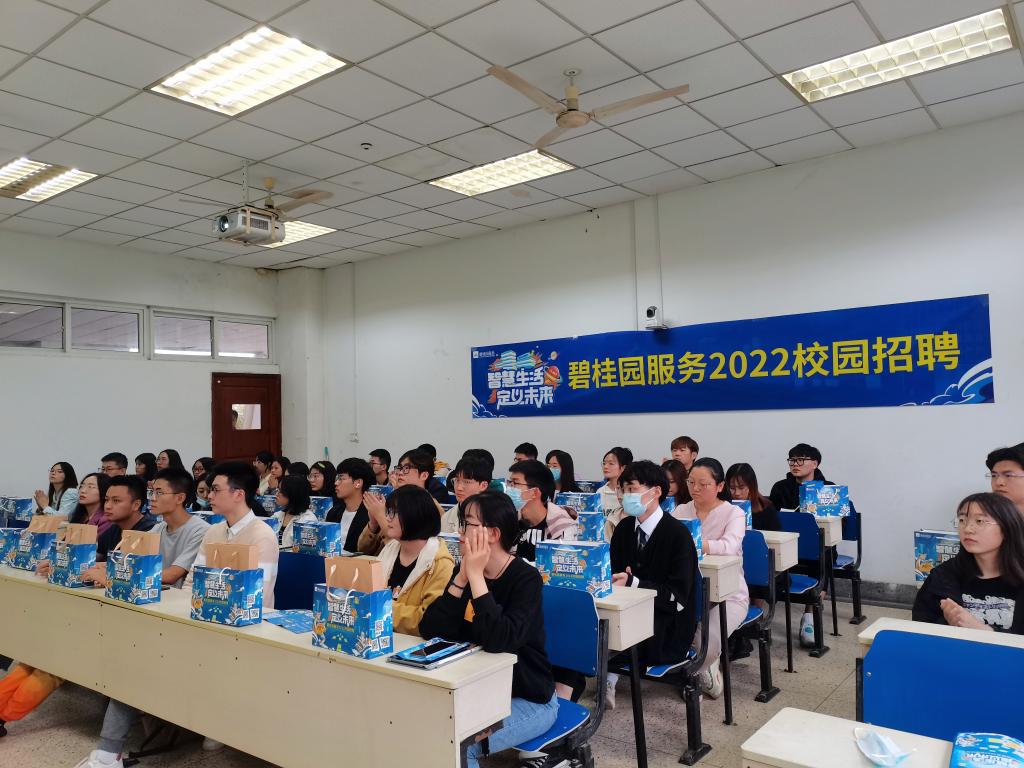 10月13日下午,公司邀请碧桂园服务江苏区有限公司在仙林校区德业楼102教室成功举办校园招聘会,2022届毕业班同学踊跃参与了本次宣讲会。