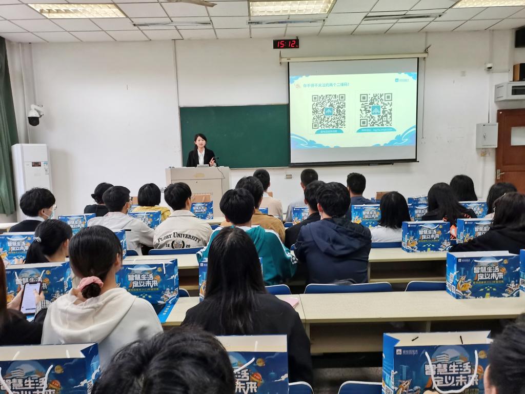 接着,就业于碧桂园服务的南财学姐给学弟学妹们分享了自己在企业的发展历程和心路变化,寄语学弟学妹进入职场步入社会也要继续学习,保持热情,去争取,去奋斗!学姐与参加此次宣讲会的同学们展开了热烈的交流,现场气氛十分热烈。