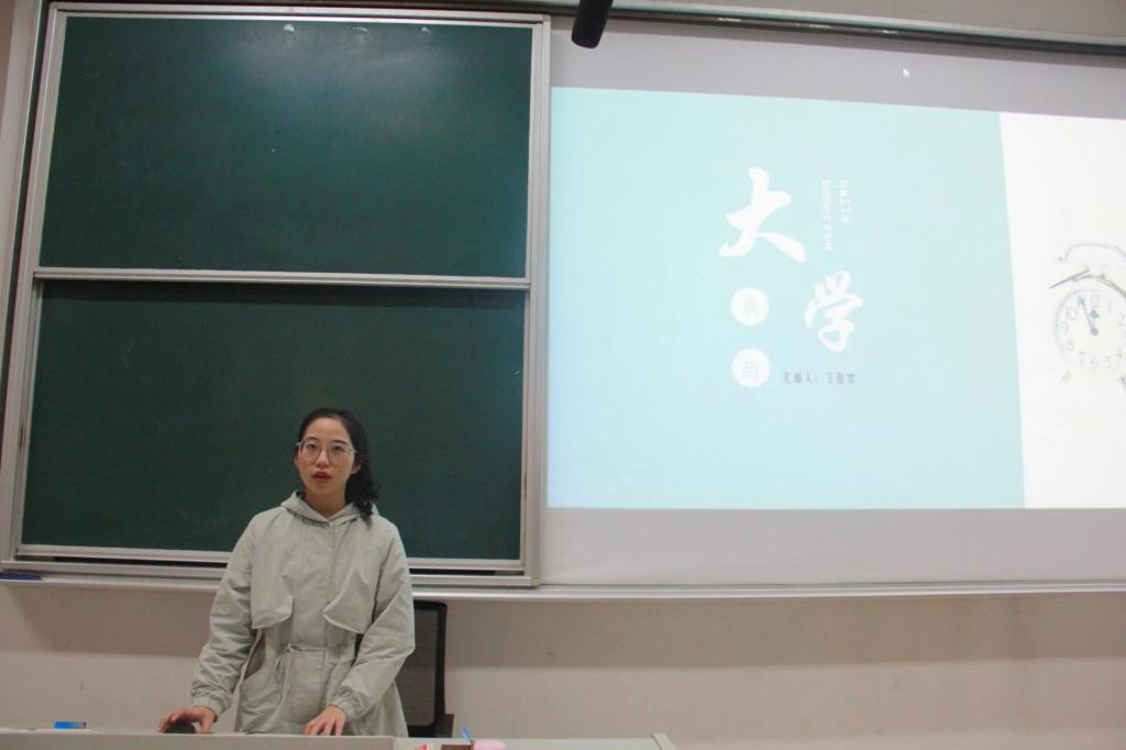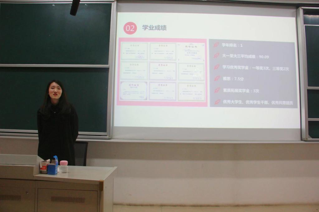 聘任仪式后,在博观楼301,4名员工资助宣传大使李宵旭、杜学思、卢安莉、王佳雯从政治思想、学习成绩、社团工作、学术竞赛、社会实践、志愿服务等方面为2021级同学做励志分享,并阐述了国家及公司的资助政策为自己带来的温暖,让在场的同学们更加了解了各项资助政策,激发了他们学习的动力和信心。