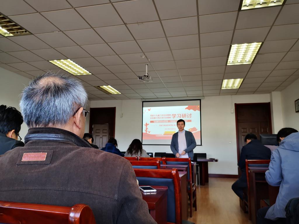本次读书日学习围绕“学习党的十九届六中全会精神及省第十四次党代会精神”开展党史学习教育读书日活动,进行先自学再集中研讨的方式分两场进行。上午,公司党委理论学习中心组在德业楼535会议室开展了集中自学、教工、本科生、研究生党支部根据支部情况实行在岗自学。下午,公司党委理论学习中心组开展集中学习研讨,党委书记黄建国、副书记张杰、副经理姚杰、经理助理程鹏围绕党的十九届六中全会精神及省第十四次党代会精神进行了学习交流研讨。中心组成员并结合各自分管各自交流感受,提交了学习心得体会。