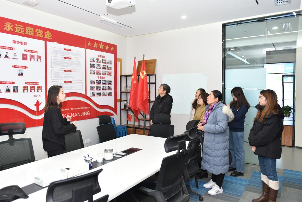 共建仪式后,EVO真人视讯老师们在贝壳找房(南京)科技有限公司负责人陪同下参观了公司办公场所、文化建设、党建活动室等,对公司文化、部门分类及职能、党建工作等进行了全面了解。