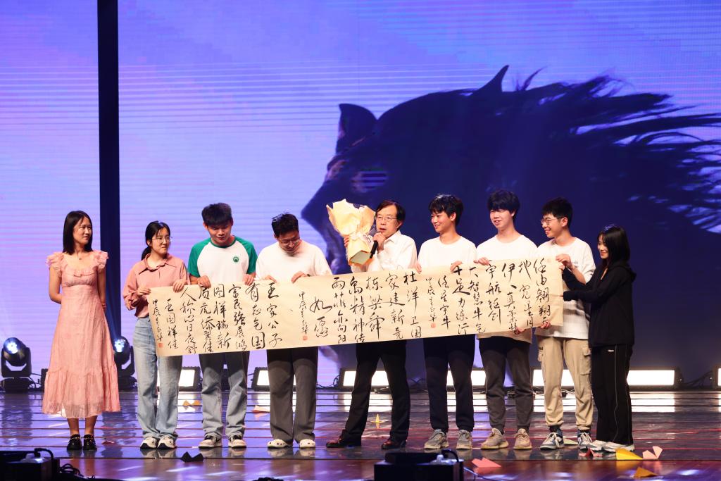 第一篇章。爵士舞《Unholy Remix》青春风暴激情四射,点燃热情;双人合唱歌曲《我想念》用温暖嗓音表达了校园生活的甜蜜与怀念;一首诗朗诵《给毕业班的散文诗》表达了依依不舍之情,以诗歌的形式给毕业学长学姐赠言,希望他们在未来有更好的发展;吴志华教授深情演唱《YouRaiseMeUp》醇厚之声中,表达了对毕业生的真诚祝福;
