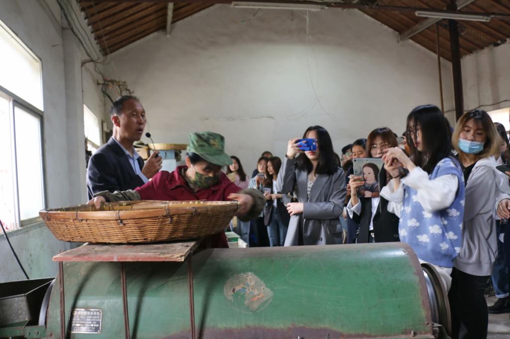 在制茶车间,顾总向大家依次展示了茶叶发酵、杀青、揉捻、干燥等生产流程,让大家体验茶叶制作的工序,并为大家讲解了新中国制茶机械制造从无到有的奋斗历程以及现阶段面临的科技难题。