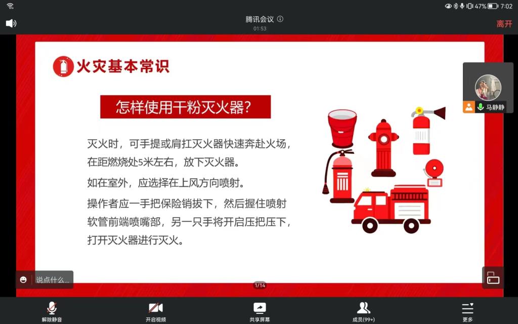 宣传活动分为线上和线下两场,分别组织了消防安全知识宣讲、消防宣传片及《烈火英雄》片段的线上观看。主持人对全国消防日与消防安全知识进行讲解和宣传,为同学们介绍了火灾的种类,灭火器的使用方法,校园防火常识以及多种错误逃生案例等常识。