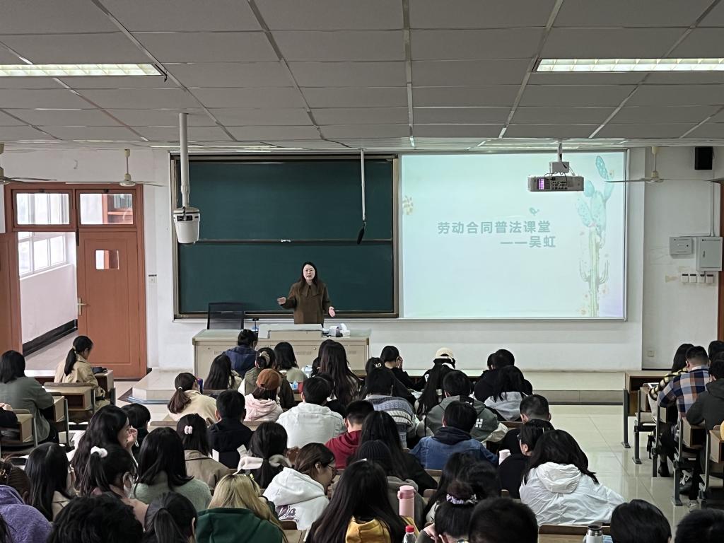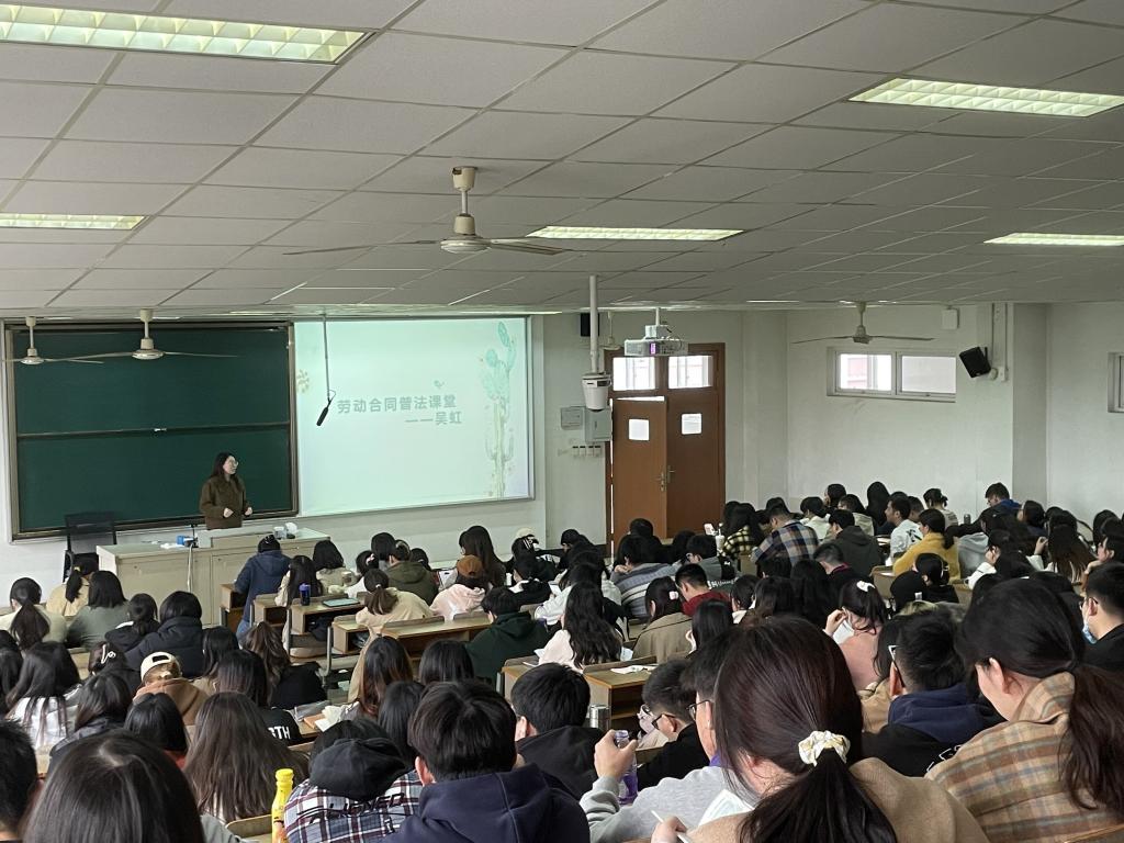 讲座中,吴虹老师根据毕业生就业实际,结合典型案例,运用通俗易懂的语言向同学们详细介绍了毕业生在求职和就业过程中的注意事项,并细致解读了《劳动合同法》,并结合热点问题,具体分析了三方协议、劳动合同类型、试用期期限等方面内容。