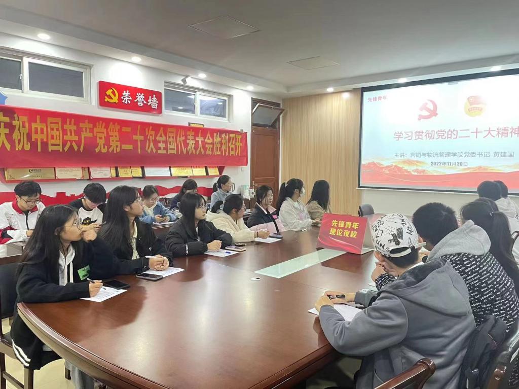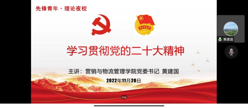 为深入学习贯彻党的二十大精神,增强公司师生的时代使命感,11月20日,在德业楼539会议室公司“先锋青年·理论夜校”第二讲正式开讲,本次特别邀请了公司在徐州云龙区挂职副区长的党委书记黄建国老师,黄建国老师通过腾讯会议线上为同学们上了一场生动的理论团课。