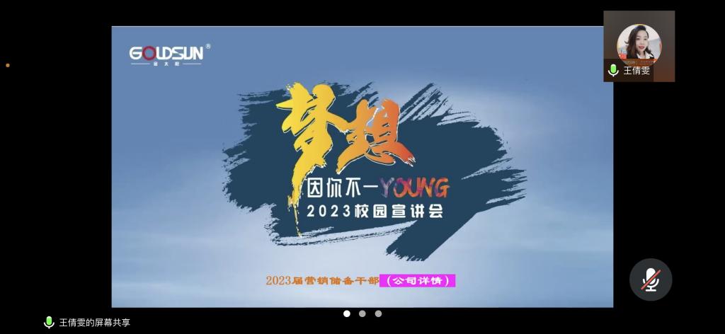 为了推进2023届毕业生就业工作,构建毕业生与用人单位的交流平台,EVO真人视讯于3月15日举办江苏金太阳纺织科技股份有限公司营销储备干部线上专场宣讲会。公司2023届毕业生参加本次宣讲。