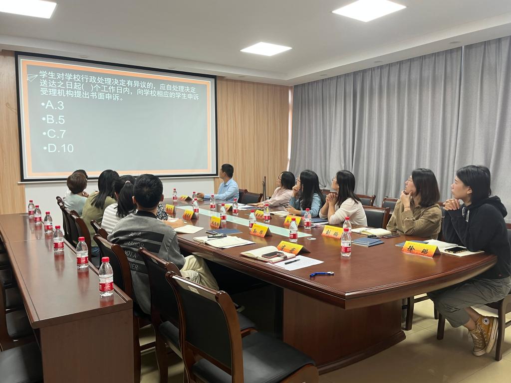 《员工手册》知识竞答环节中,辅导员们认真读题,踊跃作答,积极讨论,现场氛围紧张而活泼。本环节所设置的题目均与辅导员日常管理息息相关,通过知识竞答,不仅帮助辅导员们更好地掌握相关规章制度和工作流程,更重要的是让大家明白严格工作程序、严肃工作方法的重要性。