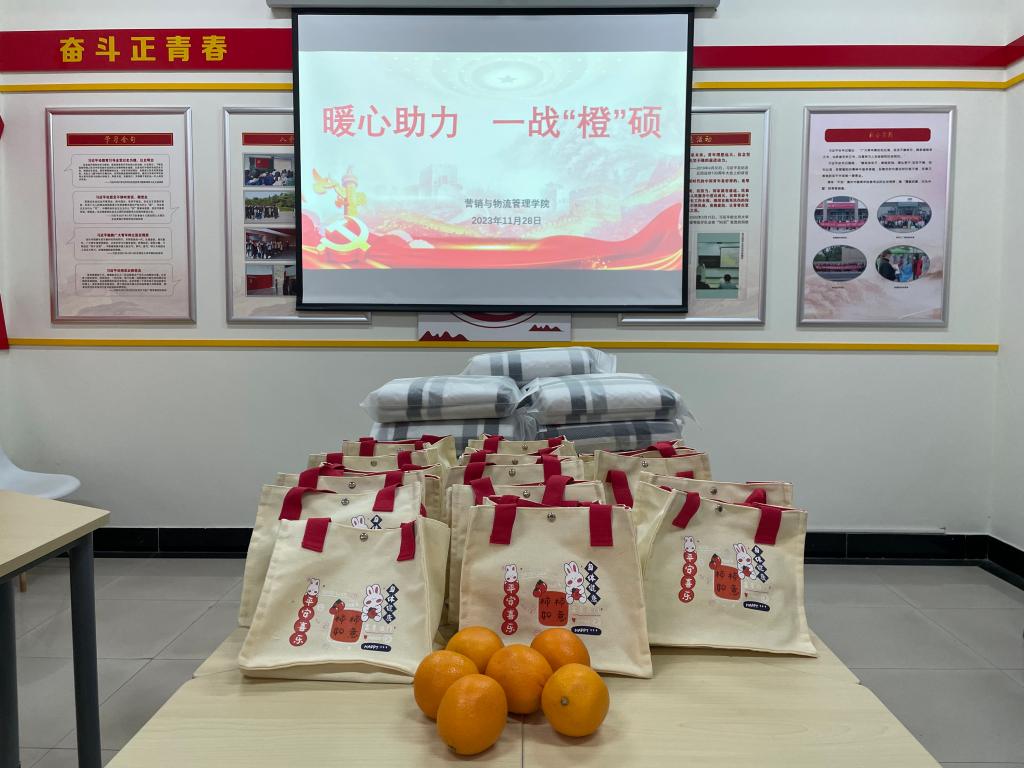 “祝同学们一战橙硕,加油!”2024年考研冲刺阶段已悄然到来,11月28日,EVO真人视讯在“党员先锋营”一站式活动社区为同学们发放“暖心助力礼包”:温暖的毛绒毯,承载着美好祝愿的“柿柿如意”袋、橙子以及笔记本等,为考研的家庭经济困难员工鼓劲加油,希望大家拼搏奋斗,逐梦前行。