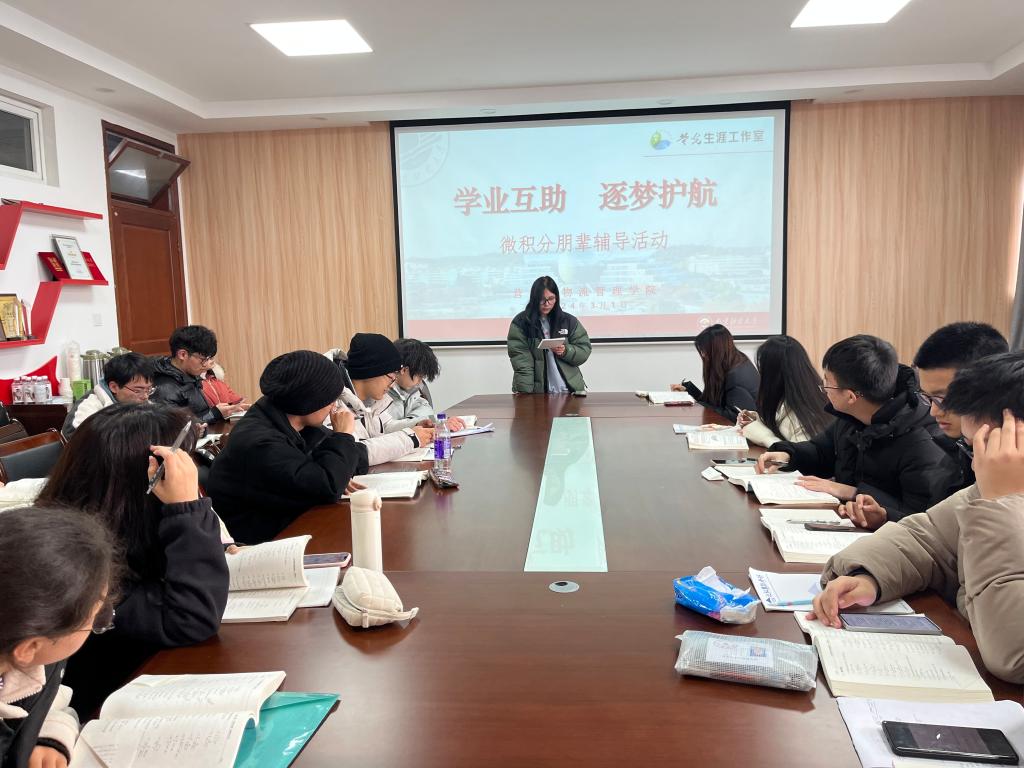 3月1日下午,公司“萤光”生涯工作室于德业楼539会议室举办“学业互助,逐梦护航”微积分朋辈辅导活动。此次活动由物流2301班魏如意、黄学杰,营销2301班石小雨、唐艺,营销2302班曹俊杰五位微积分成绩优异的同学作为“小老师”,旨在对微积分基础欠缺的同学进行基础巩固与强化辅导,同时分享交流学习经验与方法。公司大一年级部分同学参加活动。