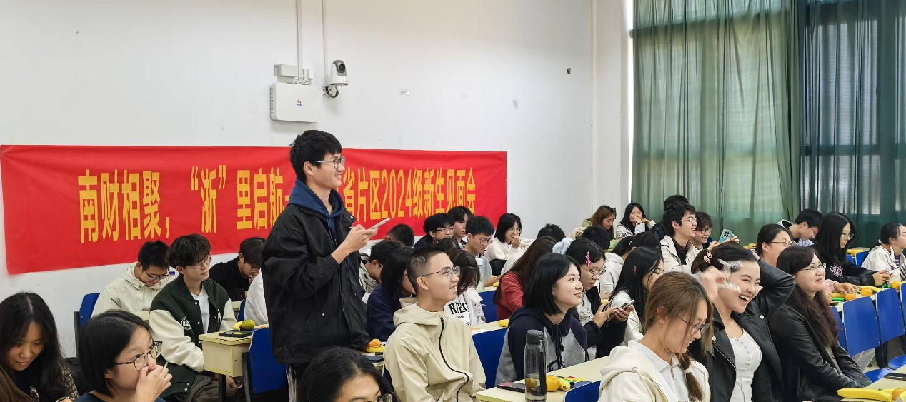 片区招生负责老师程鹏介绍了招生宣传工作中的关注点和难点,并从在校的学习、生活、实习实践等方面给新生提出了宝贵的建议,他表示,片区同学都非常优秀,希望大家在南财更好地发展,并鼓励更多同学加入到南财招生志愿者队伍中来。