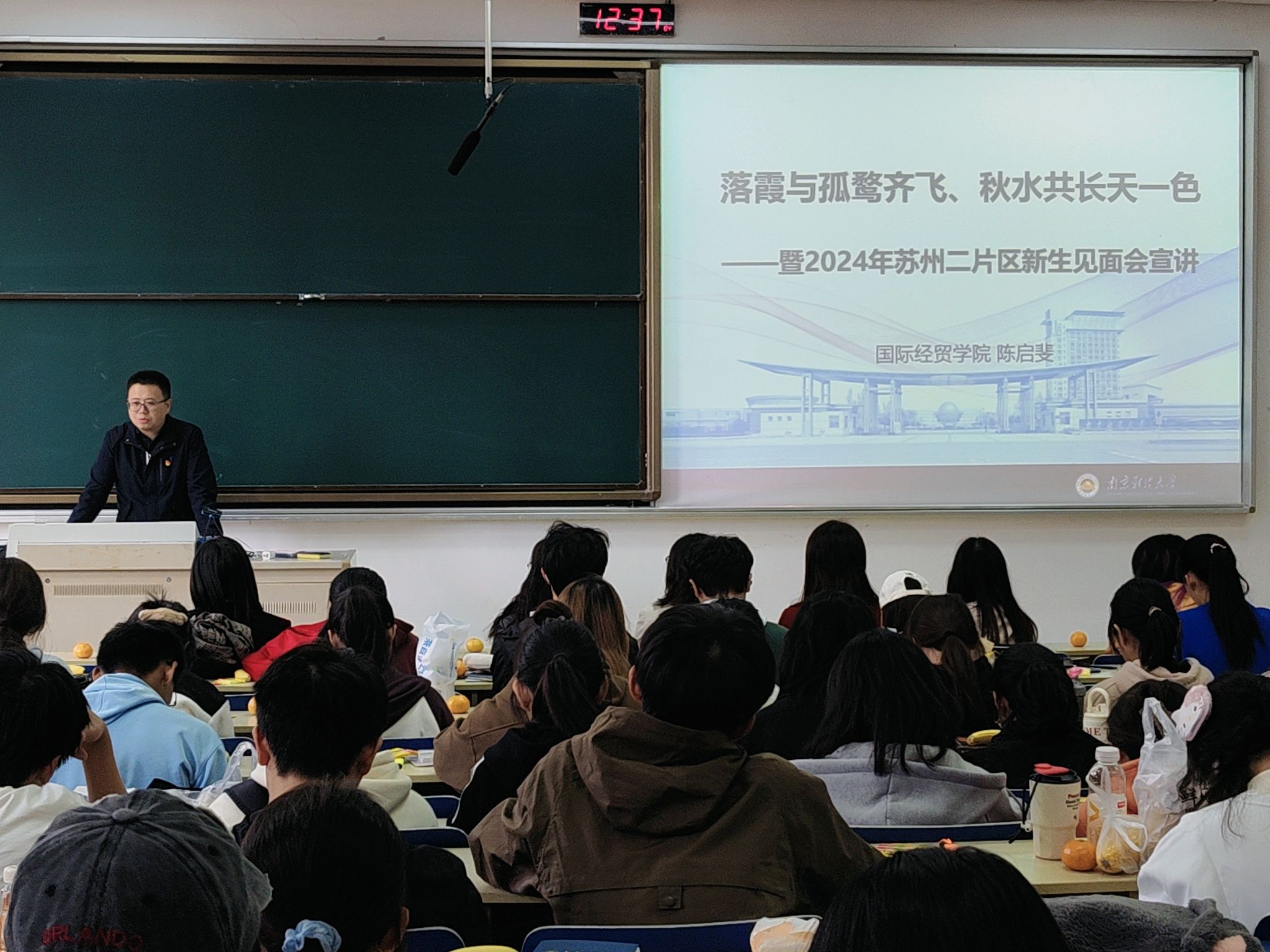 为帮助片区新生了解公司,加强员工与片区公司联系交流,11月8日下午,EVO真人视讯在德业楼118教室举行“南财“苏”韵,新“财”辈出”——苏州二片区2024级新生见面会。国际经贸公司副经理陈启斐,公司党委书记刘颖、党委副书记仲巧林、片区招生宣传志愿者代表、优秀员工代表以及片区2024级来自各公司的新生参加会议。会议由公司学工办主任肖密老师主持。