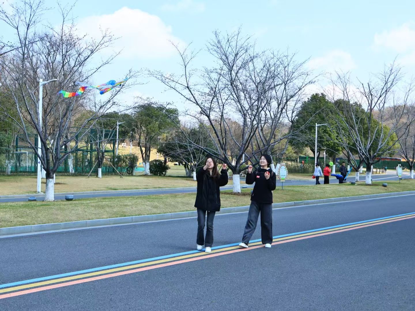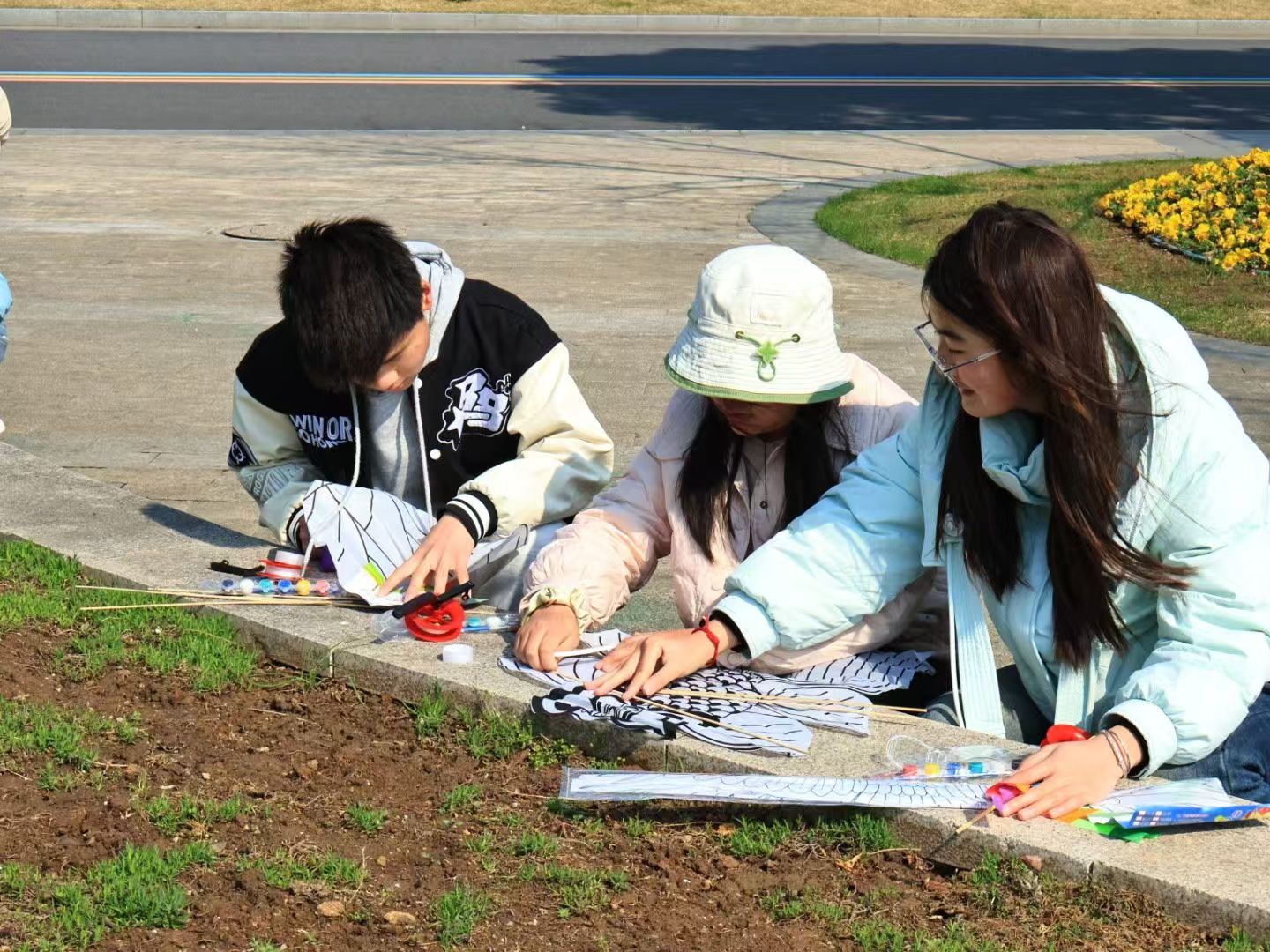接着,全体参与者齐聚草坪,集体放飞风筝。随着形态各异的彩绘纸鸢迎风而起,伴随着欢声笑语在蓝天中舞动。李同学向大家展示了自己的作品并表示:“此次活动让我感受到了自然的治愈力量,身心也得到了放松。”