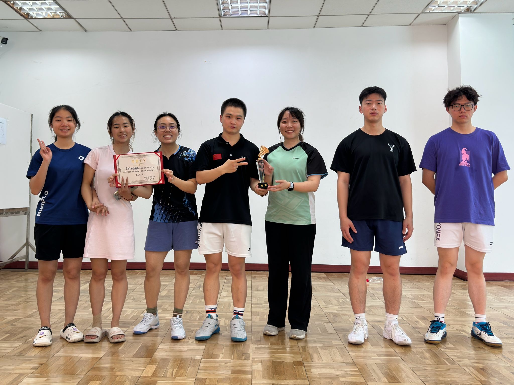 5月11日,在淘汰赛中,公司混双团队迅速回击对方扣球,奋战至最后一刻,惊险逆转金融公司晋级四强,虽然在半决赛惜败管工公司,但在季军战中凭借张倬荣(连赢10场兼项)、胥泓宇等队员出色发挥,以男单、男双、女双三项胜利战胜会计公司,研三队员用季军佳绩为校园生涯画上圆满句号。本次比赛,公司参赛成员不仅展现了高超的竞技水平,更体现了“友谊第一,比赛第二”的体育精神。