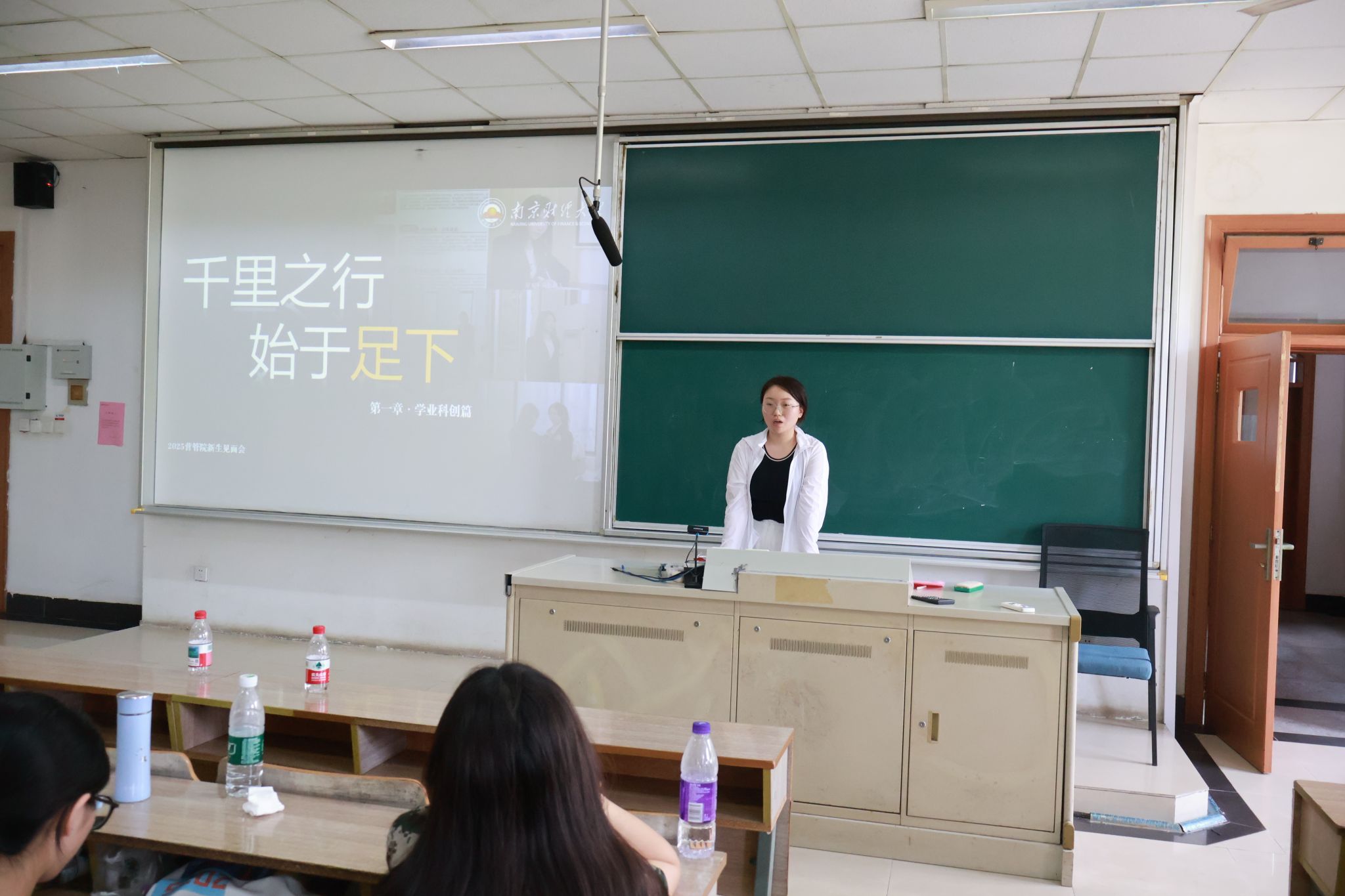 第二个环节“学长学姐说”。物流2202班陈小蕊同学以自身清晰的学业规划为蓝本,分享如何合理安排时间,平衡学习与生活,并分享了支教经历,鼓励大家投身社团活动,锻炼综合能力;广告2201刘姝均同学围绕学业科创为大家分享,在学好专业知识同时,积极参与竞赛、实践以及志愿服务。她推荐麦田数字影像工作室这一平台,鼓励大家在实践中积累经验,在创新中突破自我;2016级员工、谦达教育仙林分校董事长赵钰博学长分享了自己的创业故事,他建议学弟学妹们尽早确定目标并努力追求,明确的目标是成功的第一步,只有对自己的未来有清晰的认识,才能在职业生涯中找准方向,实现人生价值。他希望同学们能够珍惜大学时光,夯实学业,扎实做事,踏实做人,根据自身情况,规划好独属于自己的人生之路,无论是创业还是就业,做好充分准备,抓住机遇,勇敢追梦。同时他还就大学人际交往、实习实践为大家答疑解惑,结合当前就业形势,深入剖析了专业就业规划的重要性,还介绍了企业选拔人才的标准,为大家未来职业发展指明了方向。