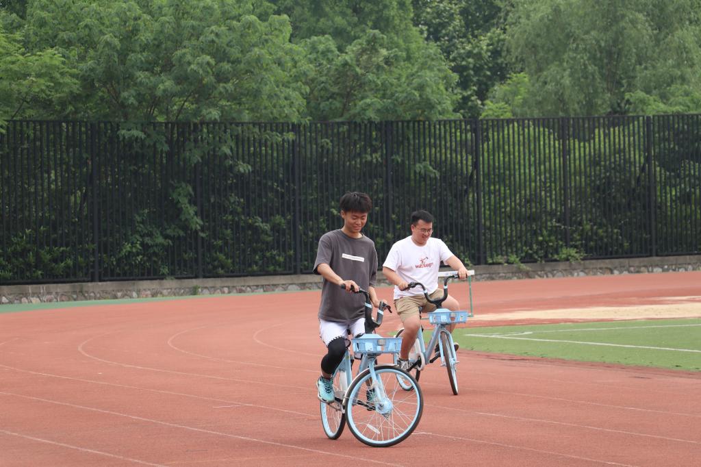接下来是非常考验平衡性和车技的自行车慢骑比赛,有的同学保持着车几乎停原地的状态,可谓十分厉害,也有搞怪选手反复掉下车引得观众大笑。可谓趣味连连,也锻炼了大家的耐心。